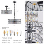 This Black Modern Crystal Drum Chandelier supports six E12 bulbs (not included), providing ample illumination for medium to large spaces. The adjustable chain makes it easy to install on different ceiling heights, whether flat or sloped. With detailed instructions and all necessary hardware included, installation is simple even for non-professionals.